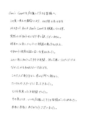 Earls Courtもmaimaiも、それぞれに今後も活動致します。変わらご声援をよろしくお願い致します。